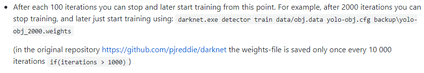 다음은 AlexyAB가 제공하는 이어서 학습하기 방법이다. https://github.com/AlexeyAB/darknet#how-to-train-to-detect-your-custom-objects